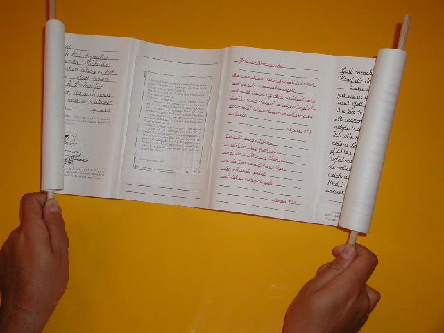 Es lohnt sich, neben dem Materialpool eines Gemeindehauses immer noch selbst ein paar Scheren, einige Flaschen Klebstoff und am Besten auch das Papier von zu Hause mit zu bringen. (Rechnung dennoch an die Kirchenpflege!!!)